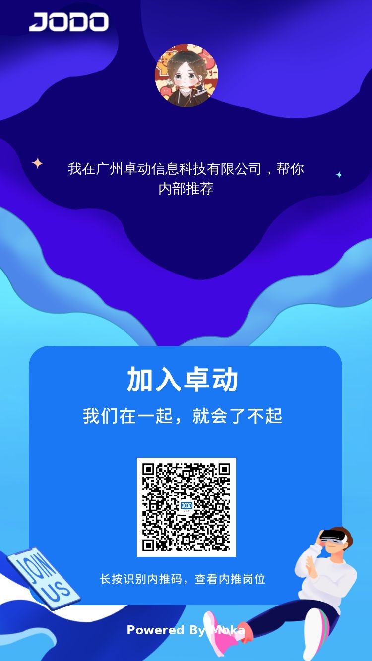 JODO关爱你:七险⼀⾦、弹性上班、双休、年假、带薪病假、年度体检;