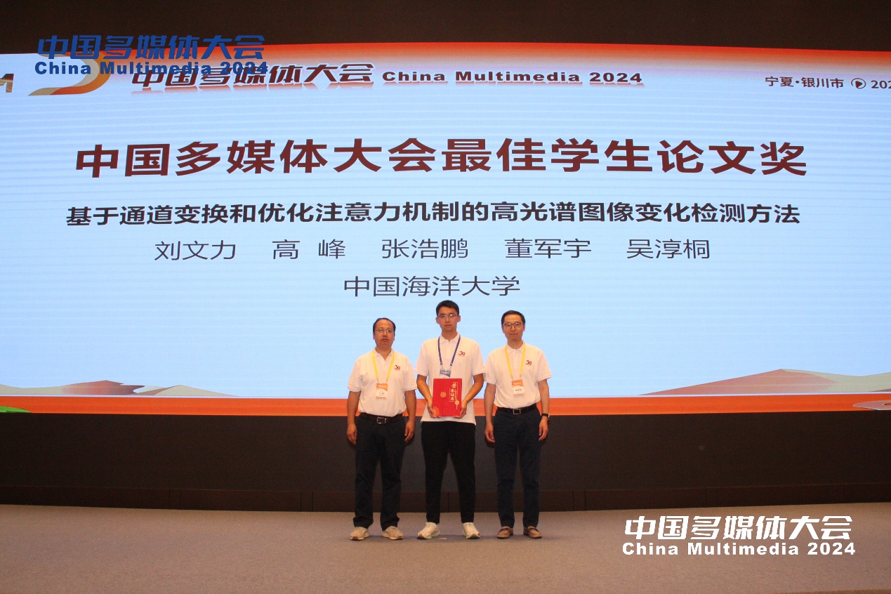 72426中国多媒体大会(ChinaMM)在银川召开,学部计算机科学与技术学院高峰副教授和董军宇教授指导的硕士研究生刘文力的论文《基于通道变换和优化注意力机制的高光谱图像变化检测方法》斩获大会唯一中文最佳学生论文奖。