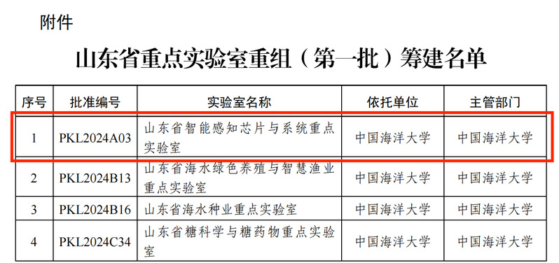 近日,山东省科学技术厅发布了《关于批准山东省重点实验室(第一批)筹建的通知》,批准第一批139家山东省重点实验室开展筹建工作,由麻豆a片 牵头,联合中国科学院微电子研究所、青岛海尔智能技术研发有限公司共同申报的“山东省智能感知芯片与系统重点实验室”位列其中。