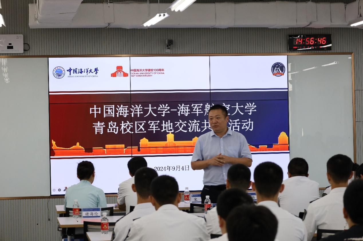 高伟在致辞中对海军航空大学一行人的到来表示欢迎。他表示,海洋技术专业与国防事业渊源深厚,希望借此活动,为双方开设一个交流的窗口,让海大师生感受到军校的特色文化,更好地落实西海岸新区作为创新示范区的政策方针。