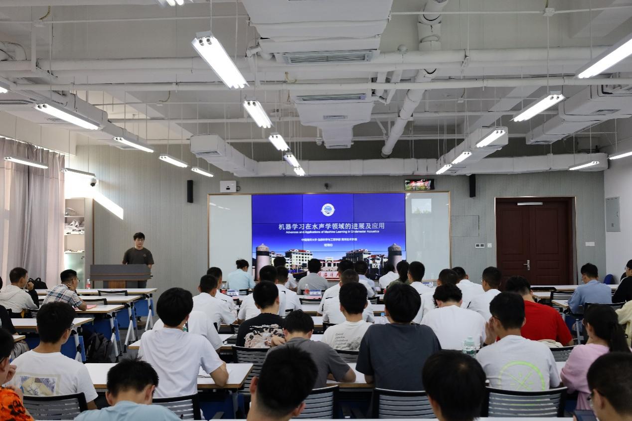 学部海洋技术学院褚海伦老师作了题为“机器学习在水声学前沿进展及应用”的专题报告。他首先对水声学的发展进行了简要介绍,接着,带领大家回顾了机器学习的发展历程,最后从声源定位、目标检测、水声通信、声场反演等四个方面介绍了机器学习在水声学领域的前沿进展与应用。