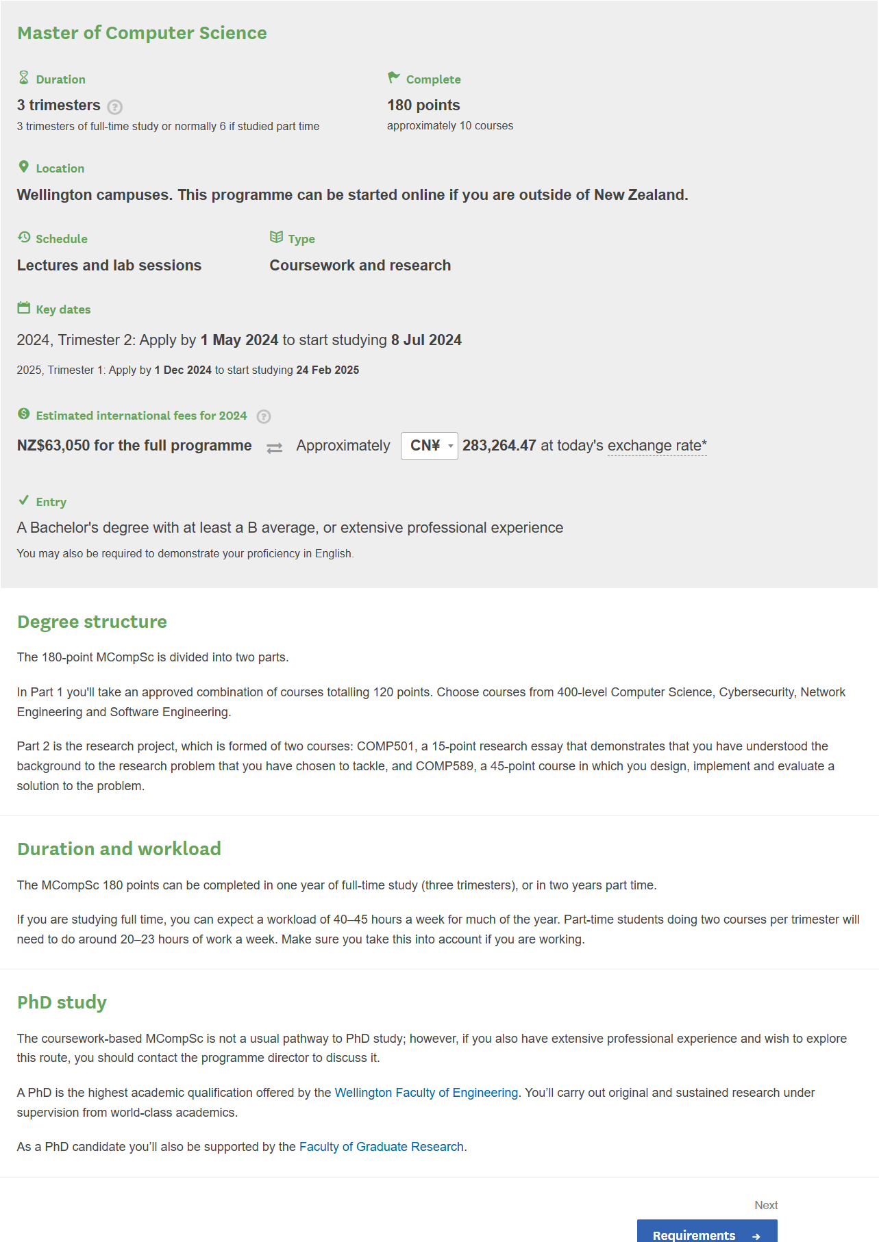 8.通过维大组织的面试、考试等方式达到其语言要求。应在维大入学通知书(或正式邀请信)中注明或单独出具证明。具体英语要求以维大最新规定为准,可参考://www.wgtn.ac.nz/explore/postgraduate-programmes/master-of-artificial-intelligence/requirements?international=true。