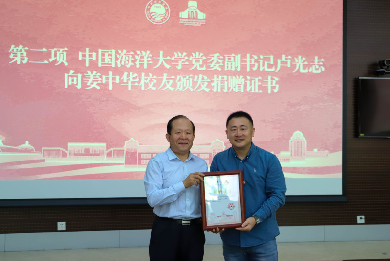 卢光志向姜中华颁发捐赠证书