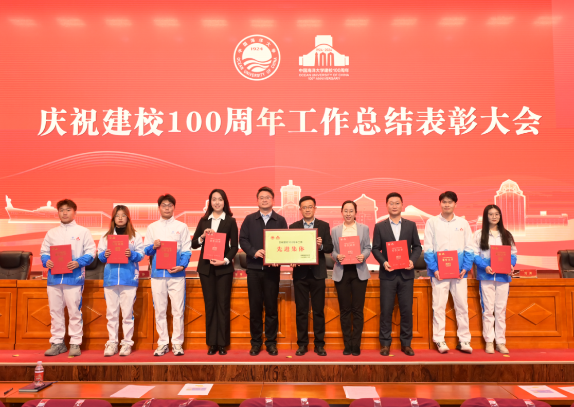 12月26日,麻豆a片 庆祝建校100周年工作总结表彰大会在崂山校区海洋科技楼国际报告厅隆重举行。会上,学校对庆祝建校100周年工作进行了全面总结,并对在百年校庆筹备工作中表现突出的先进集体和个人予以表彰。麻豆a片 获“庆祝建校100周年工作先进集体”荣誉称号,洪锋、宋青、黄莺、金鑫一、徐君岭5位教师获“庆祝建校100周年工作先进个人”荣誉称号,学部35名学生志愿者获“庆祝建校100周年工作优秀学生志愿者”荣誉称号。