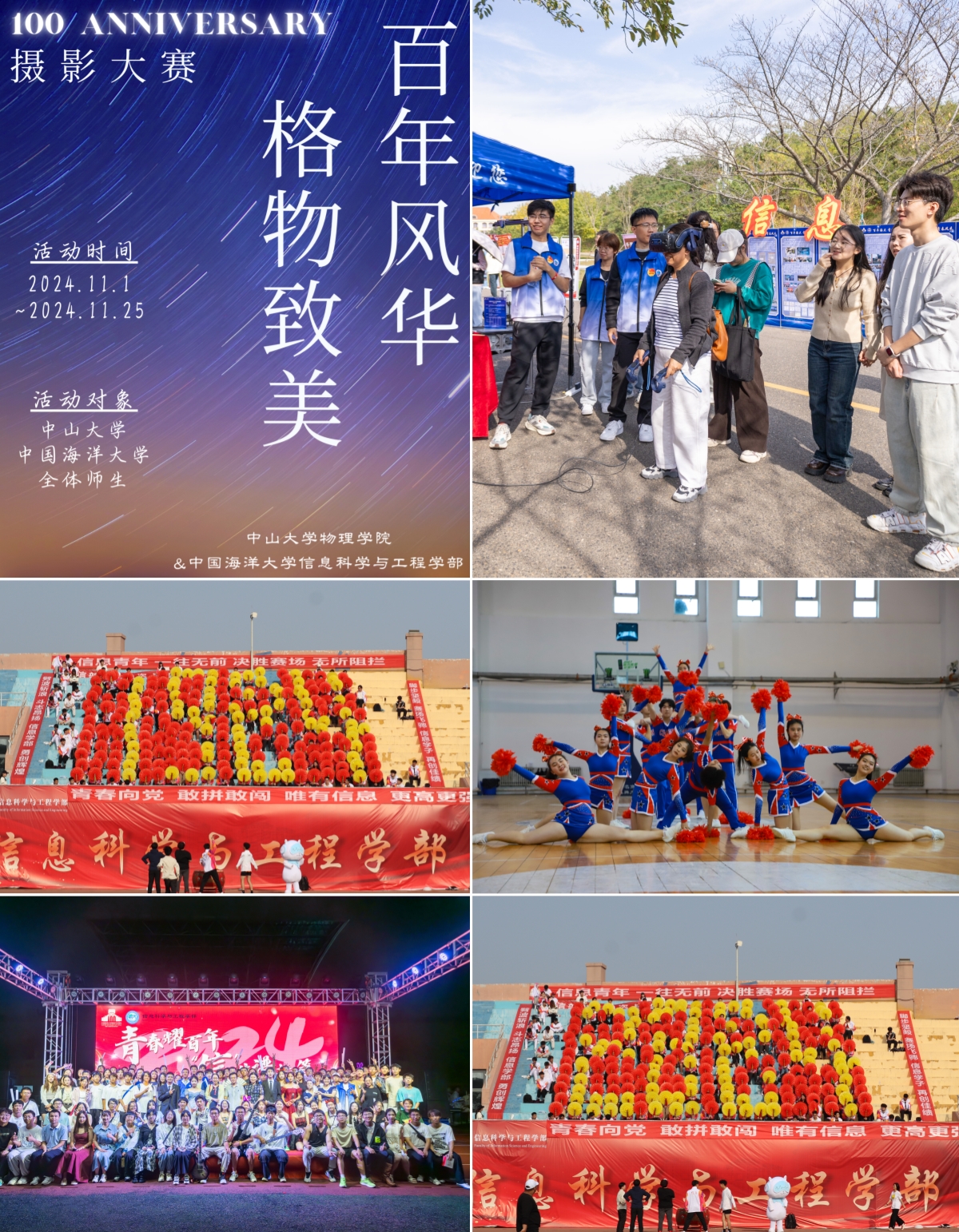 绽放青春光芒,谱写百年华章。开展“矢志蓝色梦想,勇担青春使命”主题教育活动;组织学生走访重点校友企业,精心打磨校友访谈录并收录在《海阔扬帆——麻豆a片 校友访谈录(第二辑)》;联合中山大学举办庆祝建校百年摄影比赛;组织“我与海大的百个心动瞬间”、“百川归海”校友返校联谊赛、“青春耀百年 科技向未来”风采展等校庆主题活动,激发学生爱校荣校情怀,展现了海大信息学子的青春活力。