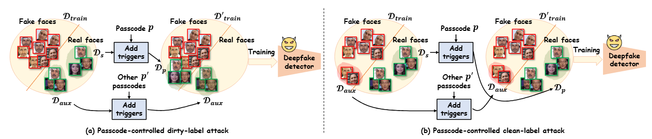 简介:本文探讨了现有人脸鉴伪模型所面临的一种新型安全问题,即第三方数据提供方可通过污染数据来给模型植入后门,影响正常预测过程。对此,我们提出了一种可密码控制、表达抑制、自适应和不可见的触发模式,确保攻击有效且隐匿地实施。该研究不仅揭示了现有人脸鉴伪模型的安全漏洞,也为其防护措施的设计提供思路。