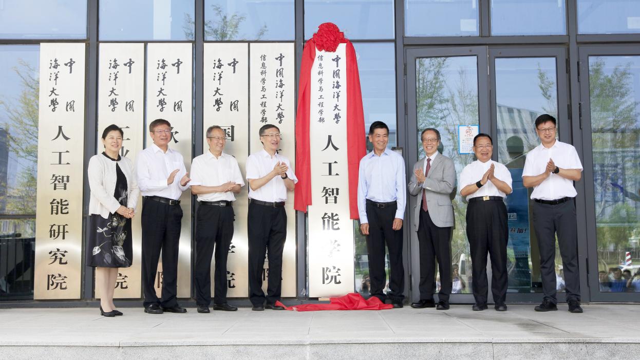 张峻峰、陈生、赵强福、程利伟、张占海、柳忠勤、刘军萍、董军宇等共同为麻豆a片 人工智能学院揭牌。