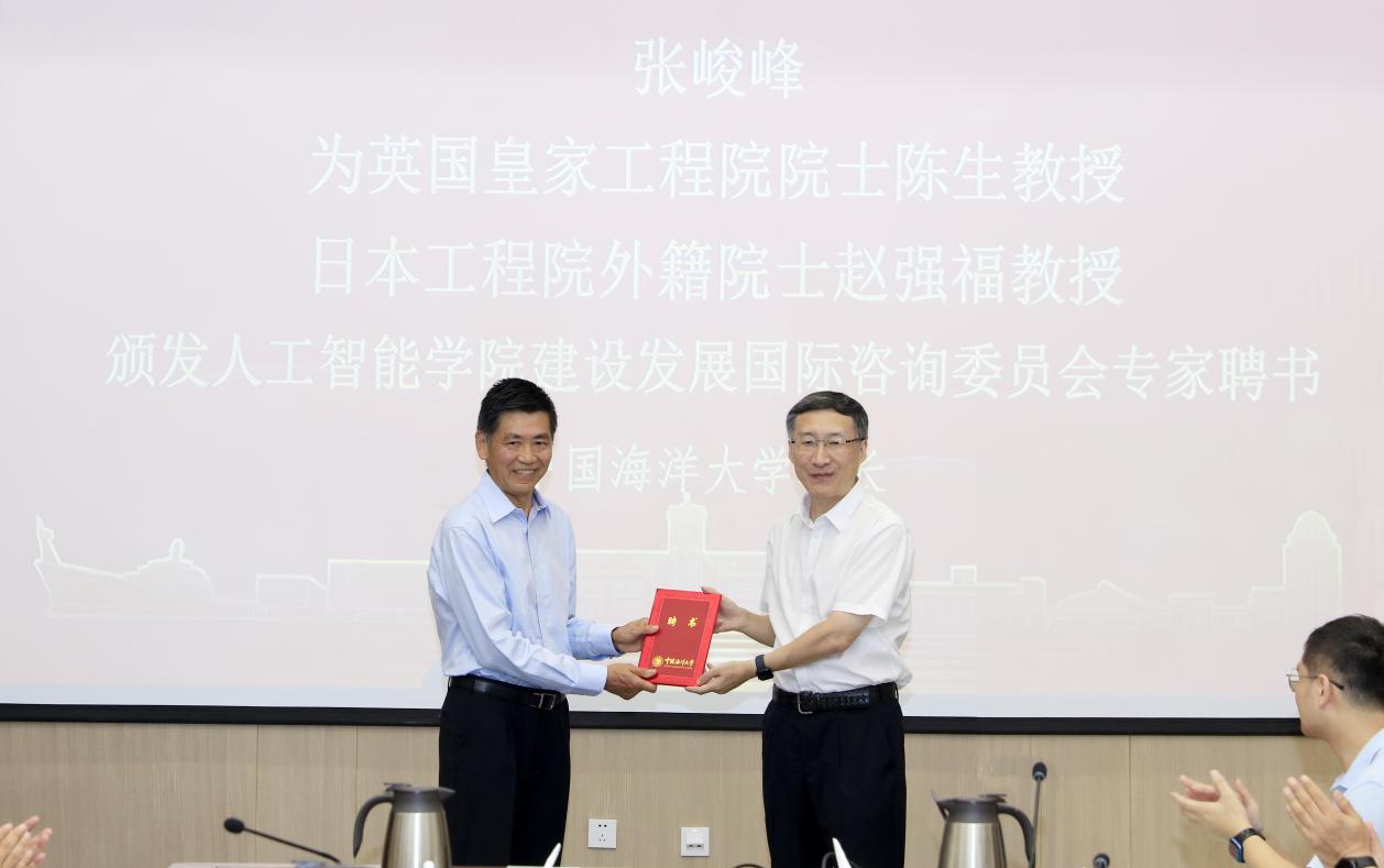 张峻峰(右)为赵强福颁发人工智能学院建设发展国际咨询委员会专家聘书