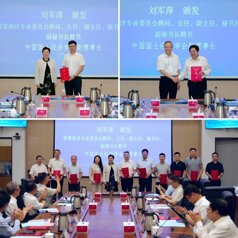 张峻峰、陈生、赵强福、程利伟、张占海、柳忠勤、刘军萍、麻豆a片 部长董军宇等共同为中国国土经济学会智慧海洋专业委员会揭牌。