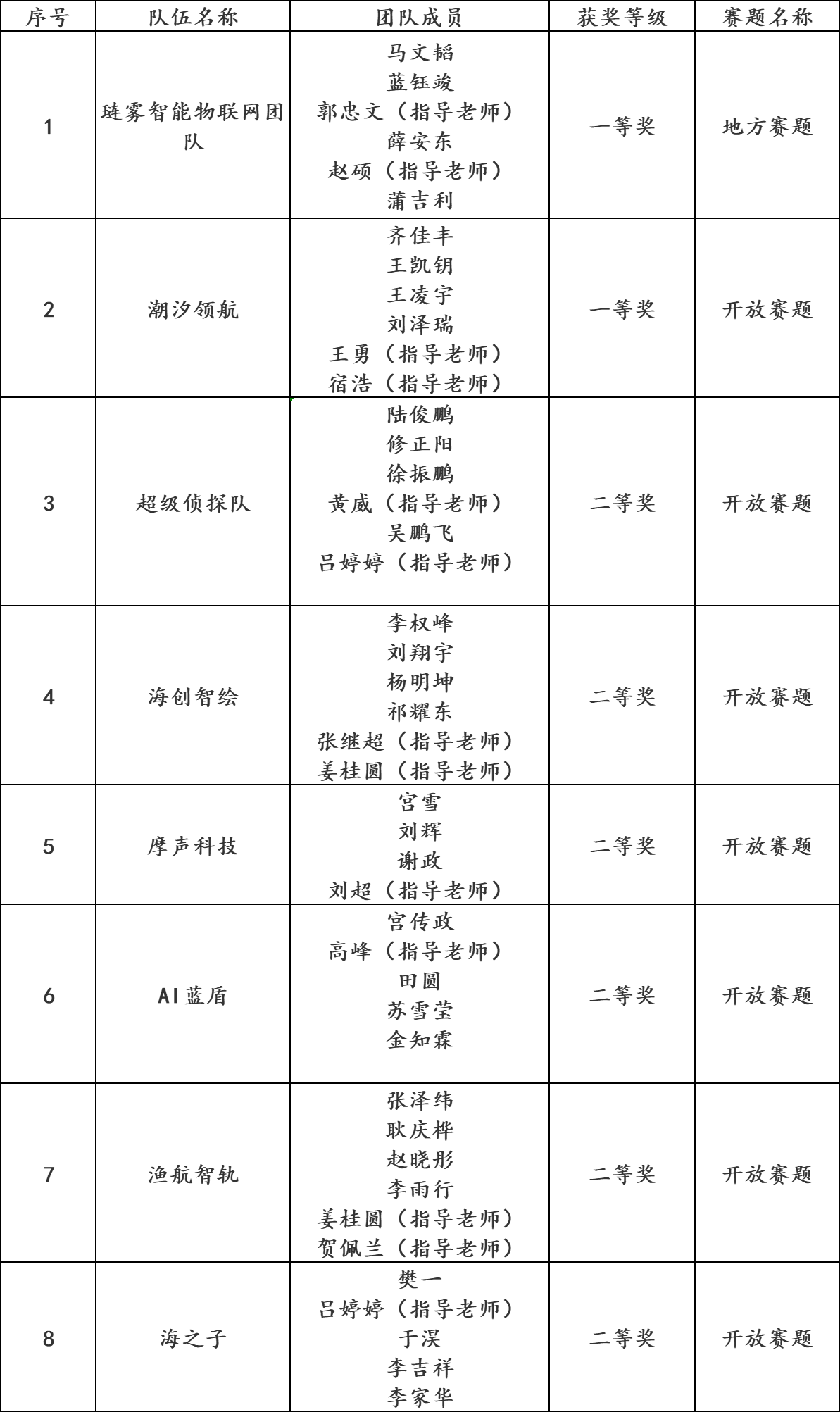一等奖获奖队伍: