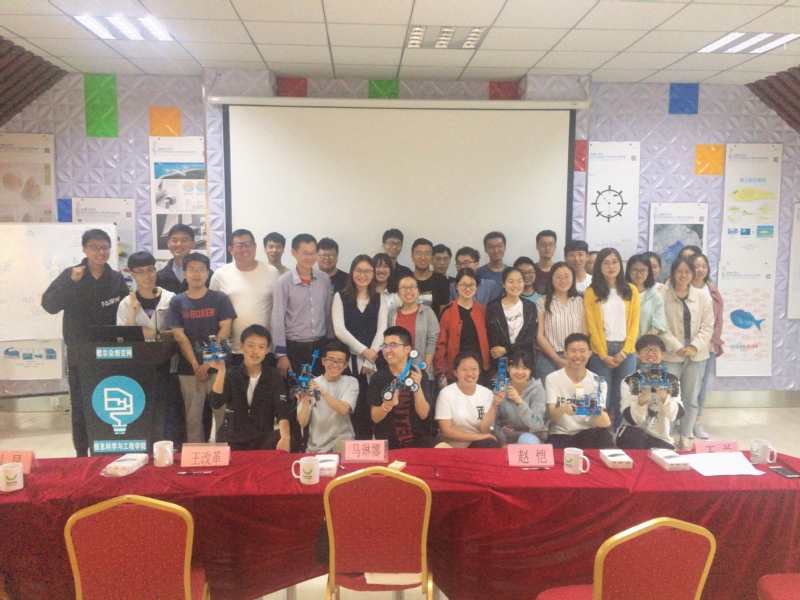 “青春海大·创客未来”麻豆a片 第二届大学生创客马拉松比赛于5月26 日在信息科学与工程学院歌尔众创空间举办,比赛要求选手围绕“智·跨越”这一开放式主题,使用主办方提供的M-block机器人套件,结合机械结构,工业设计、电子电路、计算机编程等相关专业知识,使创意变成现实,以极简的原型产品展现。最终共有6支团队获奖.