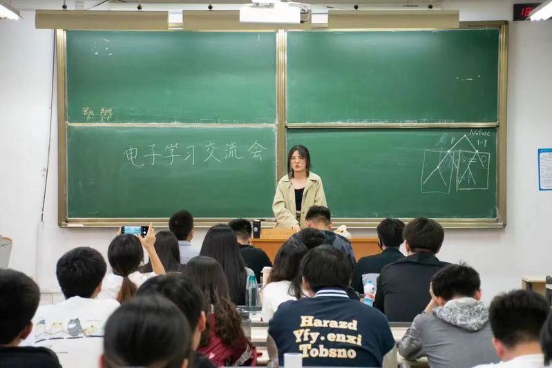 接下来,宋老师以自己在大学阶段的经历鼓励同学们,一要“勇敢”:敢于提问、大胆交流、敢于尝试、敢于突破自我、敢于走出自己的舒适区,不要害怕被拒绝,更不要害怕失败。大学提供给我们多种多样的平台,要敢于和善于利用平台试错,不断提升自身综合素质;二要时刻怀有“好奇心”,保持对周围世界和新生事物的好奇心。在大二下阶段要更加注重培养对电子信息专业的好奇心和热情,以好奇心驱动专业课的学习,并逐步明确自己的专业兴趣和读研规划。最后宋老师表示,希望大家能够坚持集体晚自习,提升学习效率,祝愿同学们在学期末取得满意的结果。