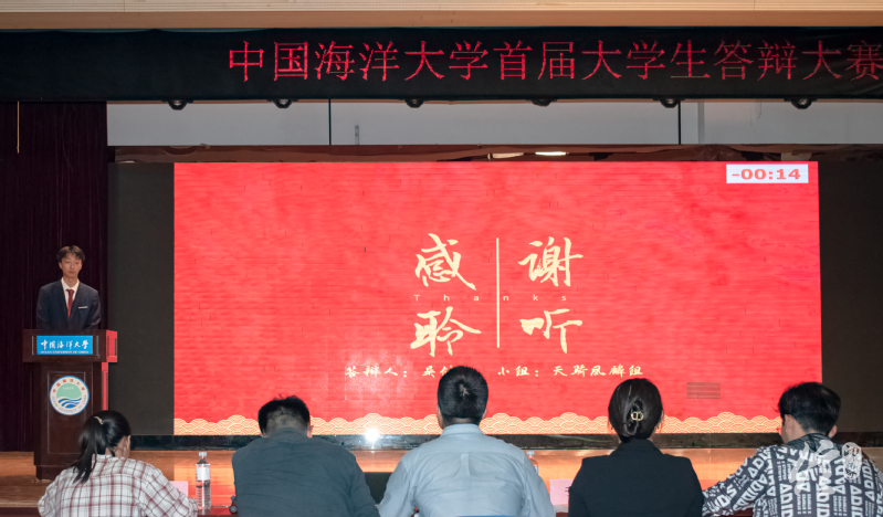 正式比赛结束,尚明治同学深情献唱《爱如海大》,成功将全场气氛点燃。节目完毕,冷震老师上台进行总结,他讲到自己从选手们身上感受到了知识和现场应变能力,同时也提出,答辩的精髓是共鸣感,答辩没有模板,每个同学都有自己的风格,都能创造出不一样的色彩,答辩的魅力就是临场表达。