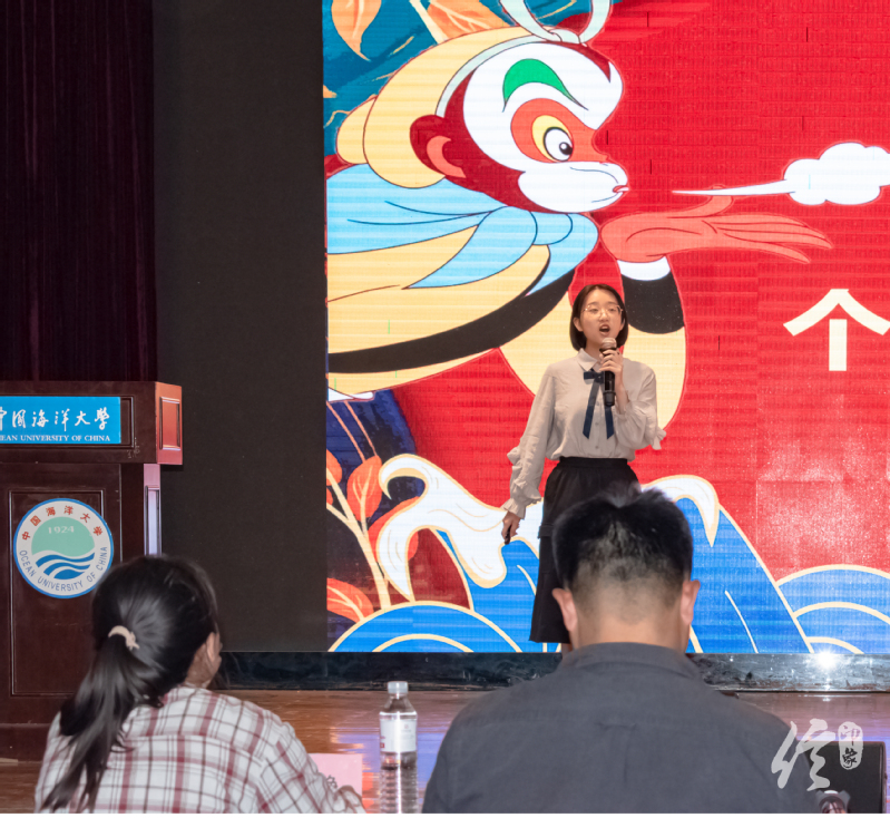 三组20级法学专业刘岩珀、郭昊瑞的题目为《继承百年经验,激扬青春斗志》,从校史 、加强“双一流”建设(回首过去,仰望未来)、浩海求索,丹心报国、我们到哪里去四个方面进行展示,带我们走近海大校史,并对海大未来的继承和愿景做出了展望,台风稳定,但节奏偏慢,缺乏重点。