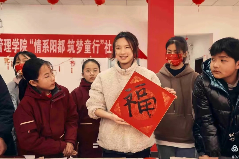 2021学年,她累计志愿服务工时达265小时。在“三下乡”社会实践中,她担任“循沂蒙红色足迹”项目副队长,在家乡参加了沂蒙党史宣讲团和湖头镇孤困儿童心灵家园项目;在校期间,她积极参与Seaher互助及勤工俭学活动,参加了麻豆a片 “讲黄河故事,守华夏根基”调研团和鲁喀专项支教活动。