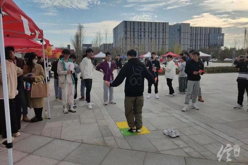 各个学生组织和社团大显身手,将党史知识学习和趣味活动完美融合。有“无错抄党史”活动,党史知识问答,也有回答党史问题获得套圈机会。学生们铆足干劲,胸有成竹的样子迎来阵阵喝彩,广场上掌声不断。趣味体育项目的棚前热闹非凡,蒙眼击球、颠乒乓球、网球进框、篮球砸水瓶……同学们各显神通,强身健体从此刻做起。在党的历史中,有多少精神令人难忘,游园会的众多活动,为当代海之子,提供了领悟这些精神的契机。在改编版重走长征路中,体会长征的困难重重;在你画我猜中,体会团结的力量;在博弈小游戏中,体会落子无悔;在红歌听歌识曲中,体会当年的激情。